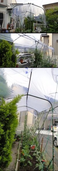 トマトの雨よけについて考えてみた 家庭菜園王はなんと言っても「トマト」と思っている私。 我が家には「トマト命」みたいなヒトもいるのでこれまでにも一番力が入っていた野菜です。 それでやっぱり一番考えているのは 「いかに甘くて味が濃くいよいよ トマトの雨よけ作りです ホームセンターには雨よけ屋根が売ってましたが、 今回は安く、簡単にというテーマがあったので、できるだけ100円ショップにこだわってみました 材料、アーチ型の支柱以外は100円ショップで購入 つなげます。 専用トマトは、雨や過湿が苦手で、太陽の光が大好きな野菜です。 ですので梅雨の天候のせいで、トマトが不調に陥ってしまうことがあります。 梅雨どきには、トマトの栽培環境を整える対策をしておきましょう。 具体的で効果的な対策をご紹介していきます。